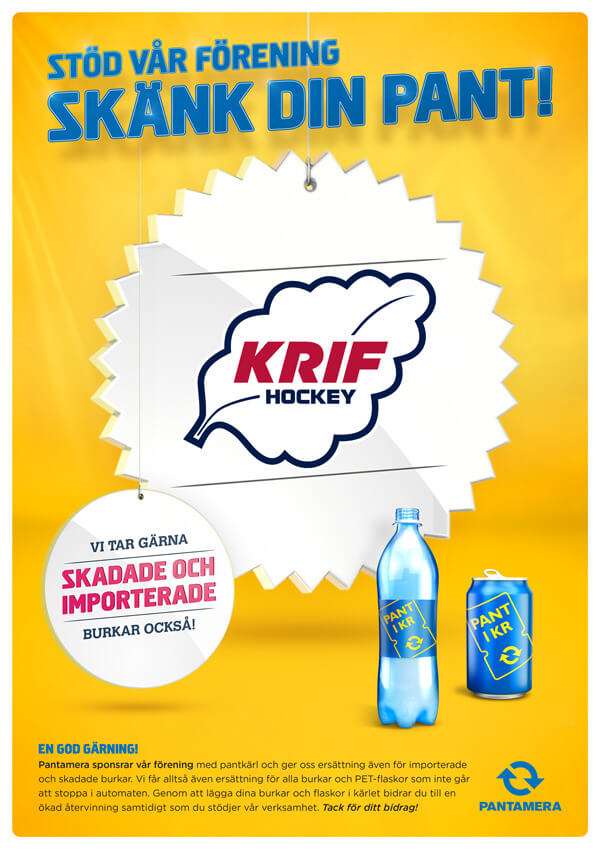 Vill du vara med? Då kan du lämna in dina burkar och flaskor utanför Soft Center Arena sista lördagen i månaden. Det går också bra att bestämma en tid när ni kan komma och lämna. För att bestämma tid skicka ett mail till kansli@krifhockey.se